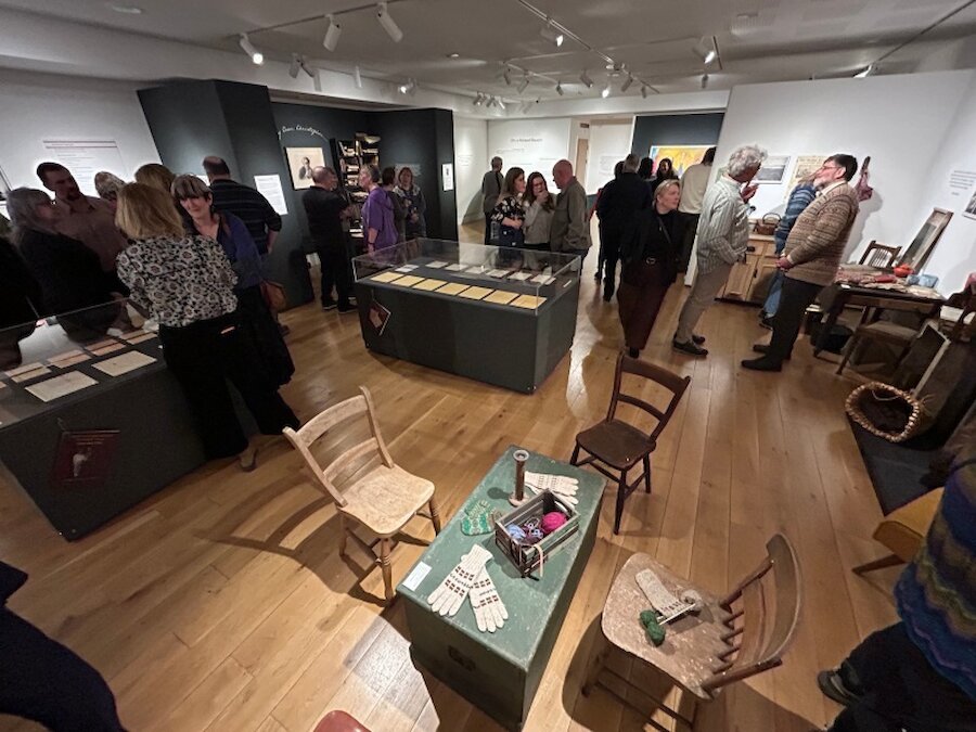 The exhibition focuses on those nine years and brings together a remarkable collection of family photographs, personal letters between Christopher and Valda, manuscripts and a range of artefacts connected with them and their period, including textiles associated with Valda. The history group in Whalsay have been closely involved in the project, which took around a year to bring together. However, other partnerships have played vital parts, too. The National Library of Scotland has lent important manuscripts and letters, and the exhibition is part of their centenary programme. Notable paintings by two artists are displayed as part of the Royal Scottish Academy’s 200th anniversary celebrations. Christopher Grieve’s descendants have also participated in the preparations; his grandsons, Dorian and Christopher, were very welcome guests over the opening weekend.