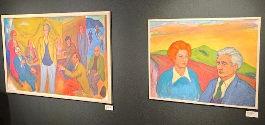 Alexander Moffat portrays the couple and their contemporaries, the group image representing the literary regulars in Milne’s Bar.